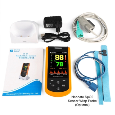 The FDA-approved SP-20 pulse oximeter accurately measures and records oxygen saturation (SpO2%) and heart rate data. The SP-20 is perfect for spot checks and continuous monitoring.